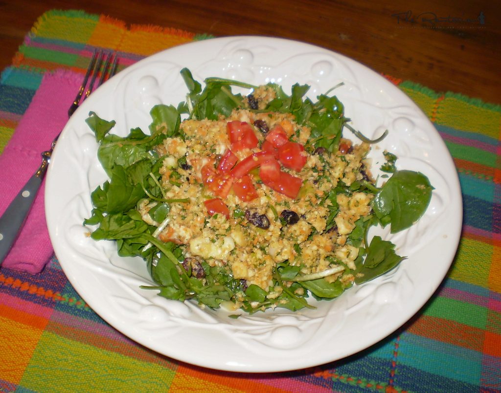 This salad has been adapted from an old favorite of mine, the “Sesame Orzo Salad” from the Frog Commissary Cookbook. The recipe for the dressing is pretty true to the original but the salad ingredients are obviously very pasta free! This recipe is so adaptable. You can serve it over a bed of greens as I’ve done here or wrap the salad up in a romaine or collard leaf. Even stuff it in a tomato. The dressing is great anytime!