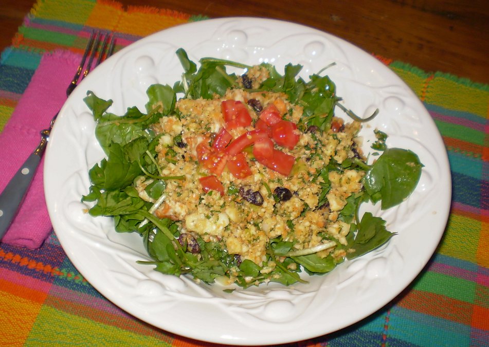 Serve salad over bed of spinach and watercress add more dressing as desired.