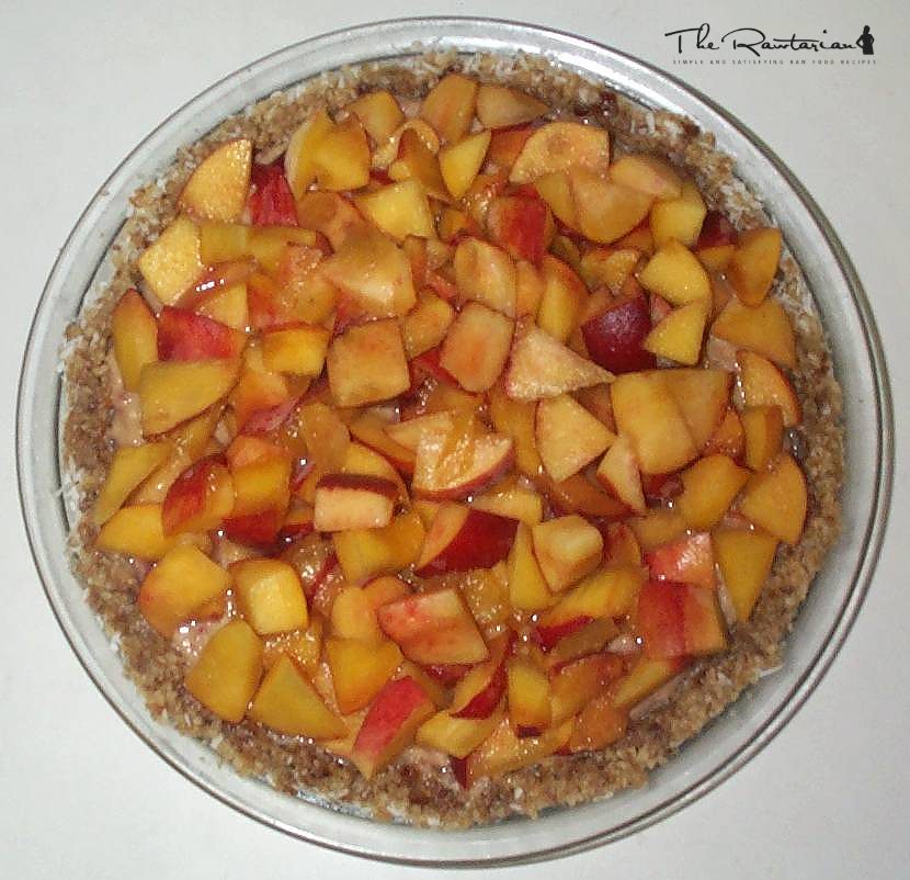 7. Arrange sliced or chopped peaches or nectarines on top of each pie. You can chill this for an hour or so if you prefer it that way.