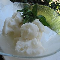 By holistica At a fair in 2007, I couldn’t find a single vendor with something raw (no suprise, really). A woman selling lemonade from a cart a few yards away caught my eye. I watched her squeeze (gasp) real lemons into a cup and add sugar and water. Since then, I had made my own honey-sweetened version with great success. Then I thought, why not try adding peppermint sun tea to it? Brilliant!