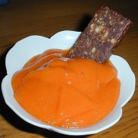 2. Blend the persimmon until completely smooth and mix with the agar mixture. Once it sets, the sweetness will lesson.