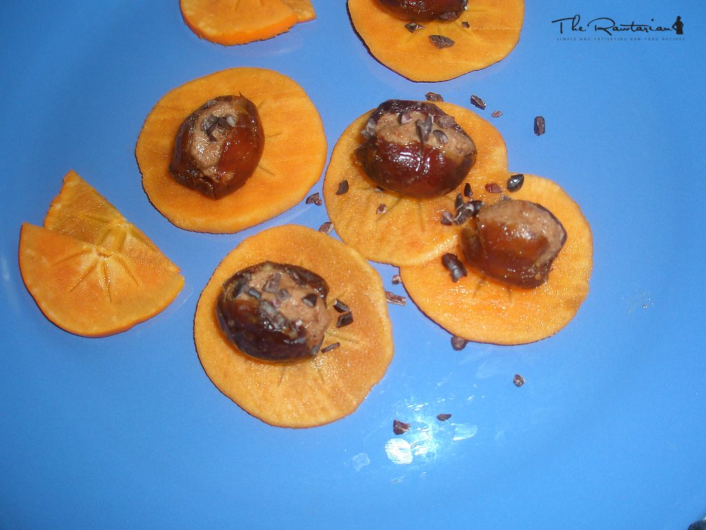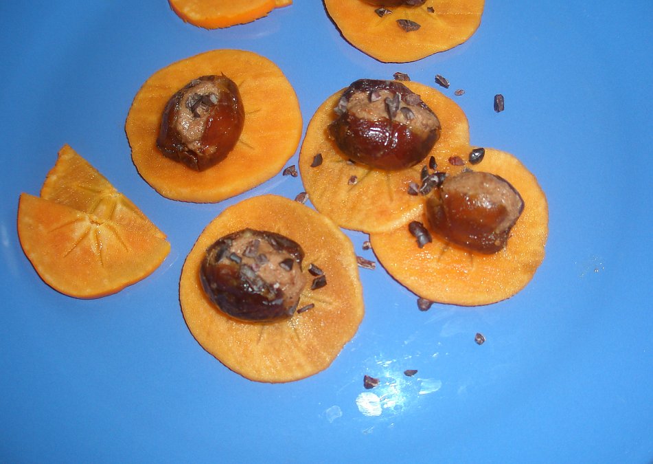 correct... apples are also good to use in this recepie, though need to be sprinkled with lemon. in addtion flavors of persimmons to me is a better match with dates... i dont have dehydrator; i really enjoy fresh/vegitables and have dry only on rare occation or when i travel. i am sure it is extra sweet when dry
