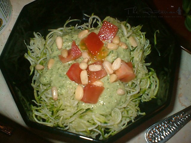 note: the texture of the of the zucchini noodles improves when they are left to sit out in the open air at room temp for a couple hours.