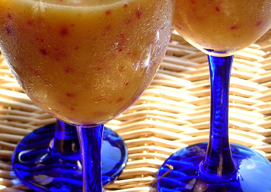 Beautiful photo, I love the colbalt blue and sunrise orange together. I am especially liking the little chunks of peach shown. I LOVE ICY drinks, this looks divine. Thank you for your offering.