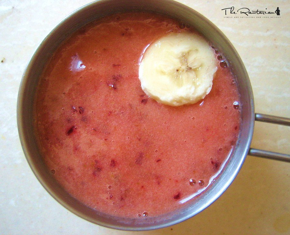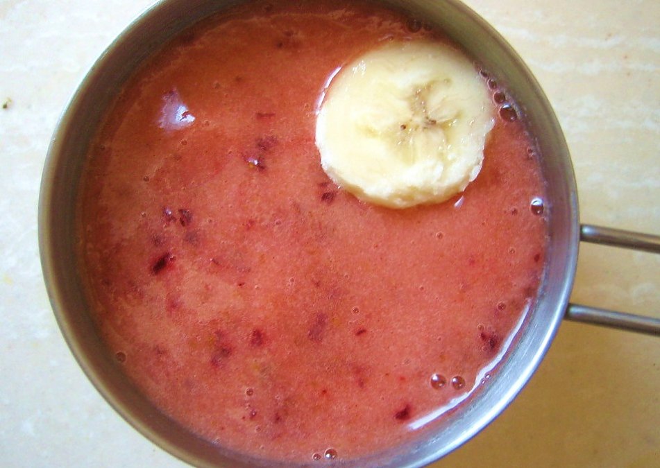 1. Combine ripe plums, 1/2 banana, date, and water in blender. Blend until creamy.