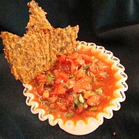 2. Chop onion, tomato, basil, garlic, and stems fairly small. Mix in a bowl with all other ingredients.