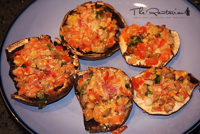3. Load up your mushrooms with the filling. Pop into dehydrator at 100-105 Fahrenheit until warm or up to 4 hours.