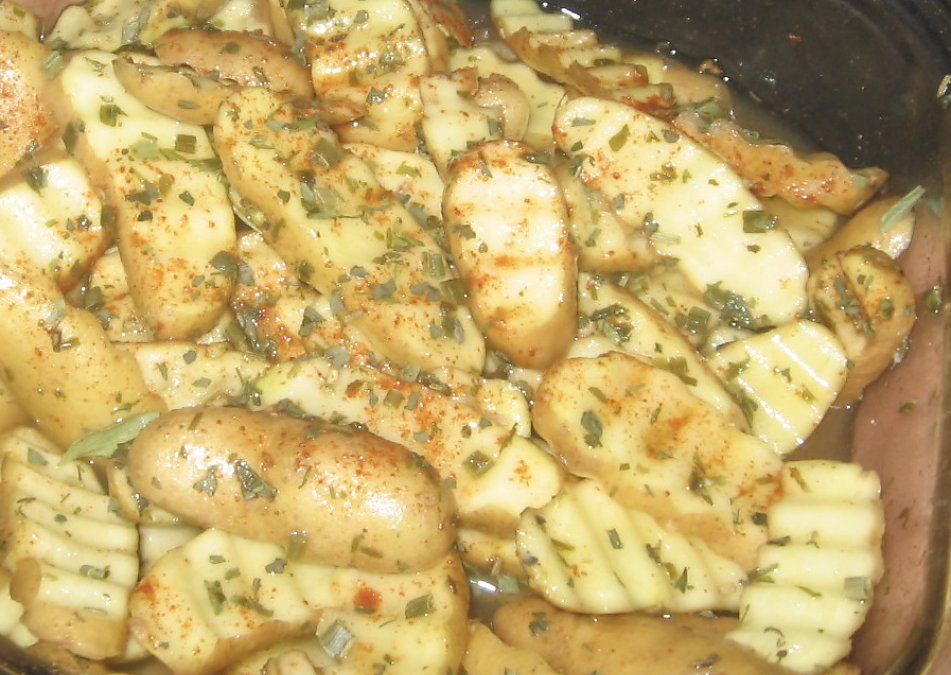 2. Toss everything in a bowl along with the herbs. Top with olive oil and set in the fridge overnight or until you feel the potatoes have absorbed the flavors.