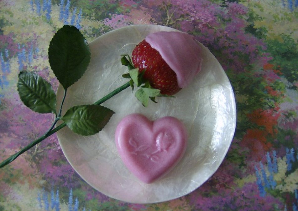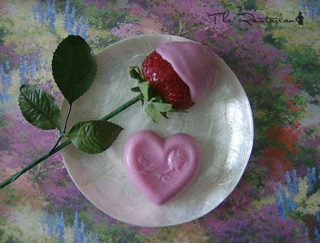 4. Dip a skewered strawberry into the mixture and spoon the rest into approximately a 1/4 cup candy mold.