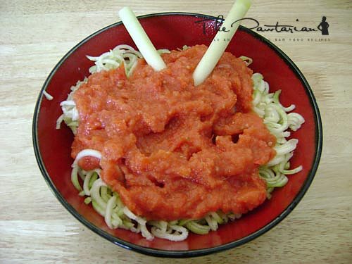 By maihio i was coming up with recipes for my left over pulp from juicing, and i thought that my tomato fusion juice pulp would make a great fresh pasta sauce.