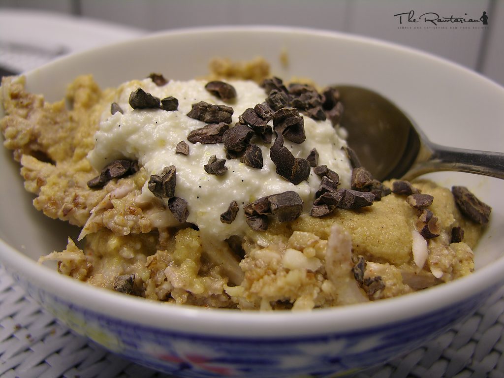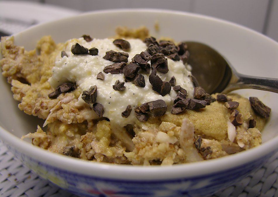 This is really tasty. The cacao nibs for the topping really add a lot to the flavor, as well as the nice visual flourish.