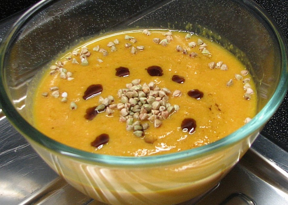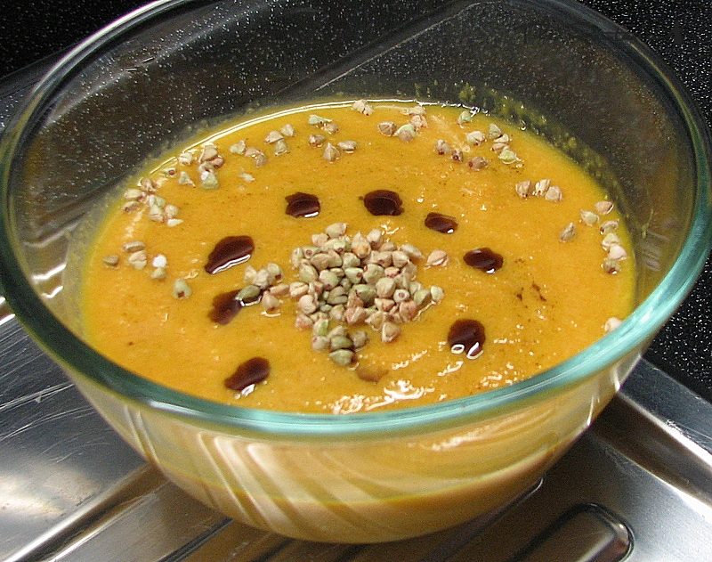 I top it with dehydrated buckwheat and with pumpkin seed oil drops.