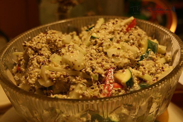 By dodo a very hearty salad utilising my sunflower sourcream recipe as the salad sauce, you can use your favourite creamy raw dressing if you prefer, i would recomend getting a bit of garlic in there somehow though