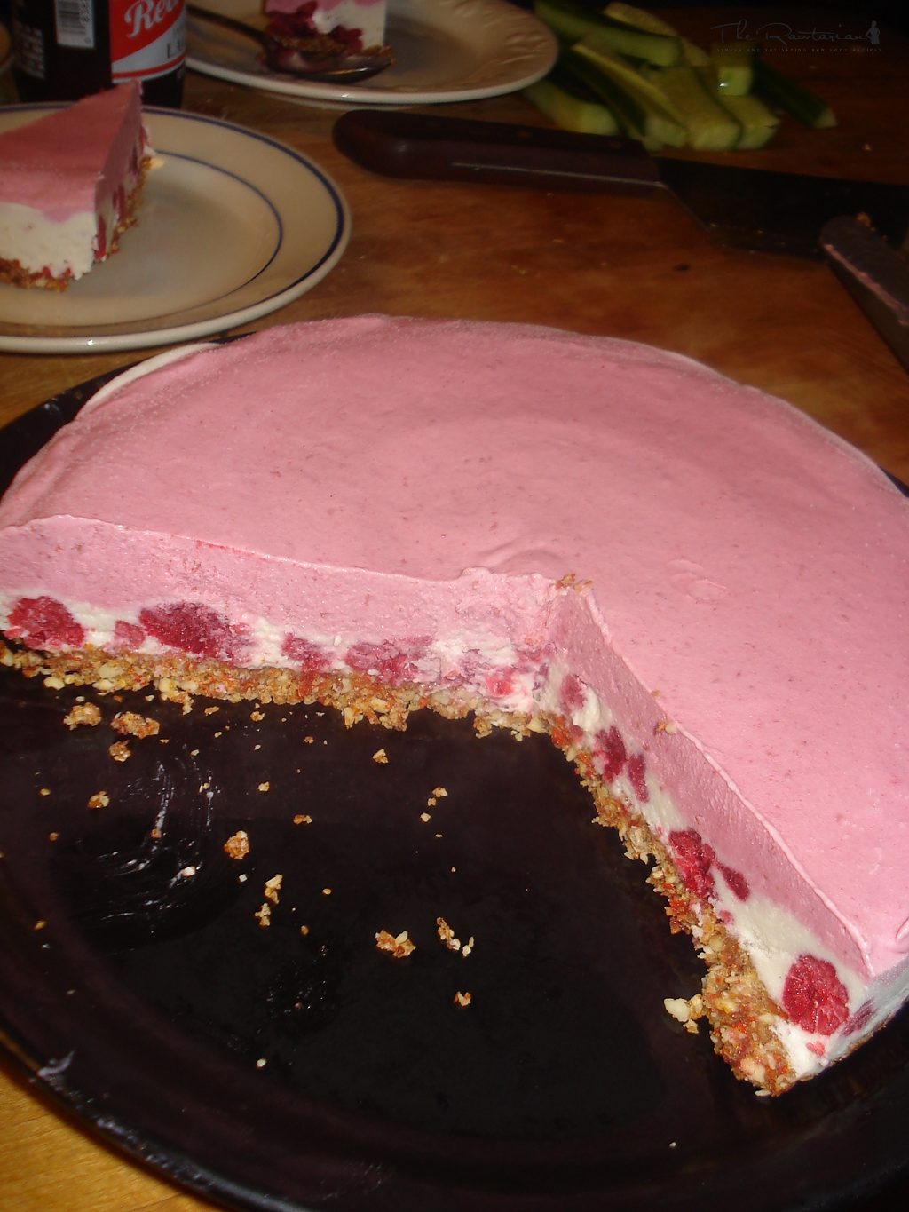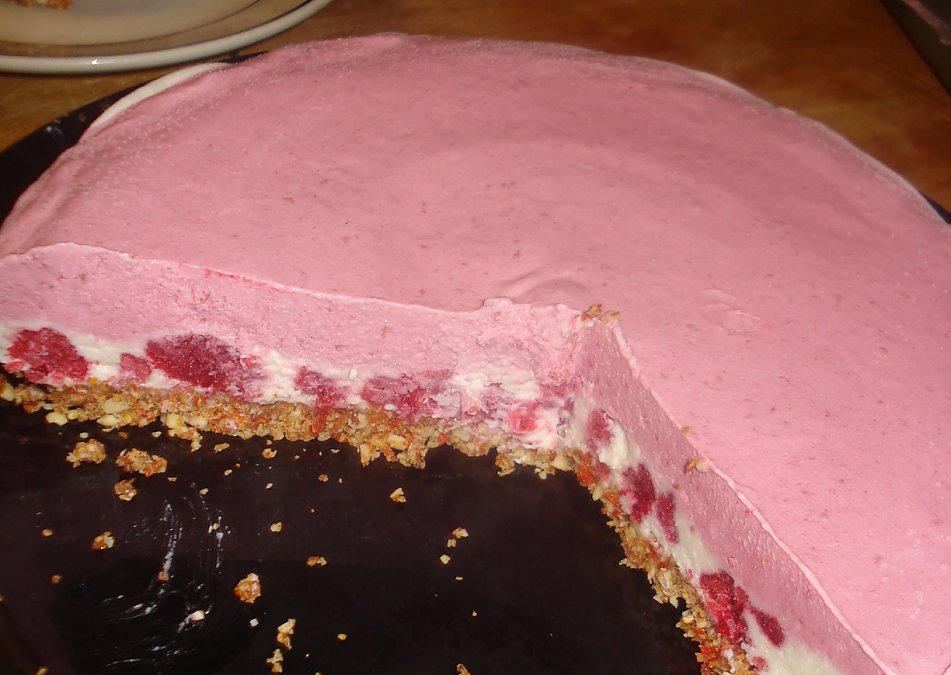 5. Place the remaining half of raspberries over the crust and pour the cream over the raspberries.