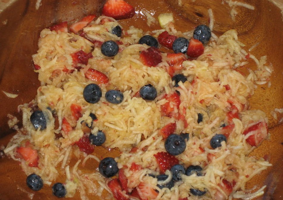4. Then add berries and mix.