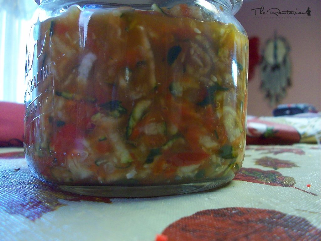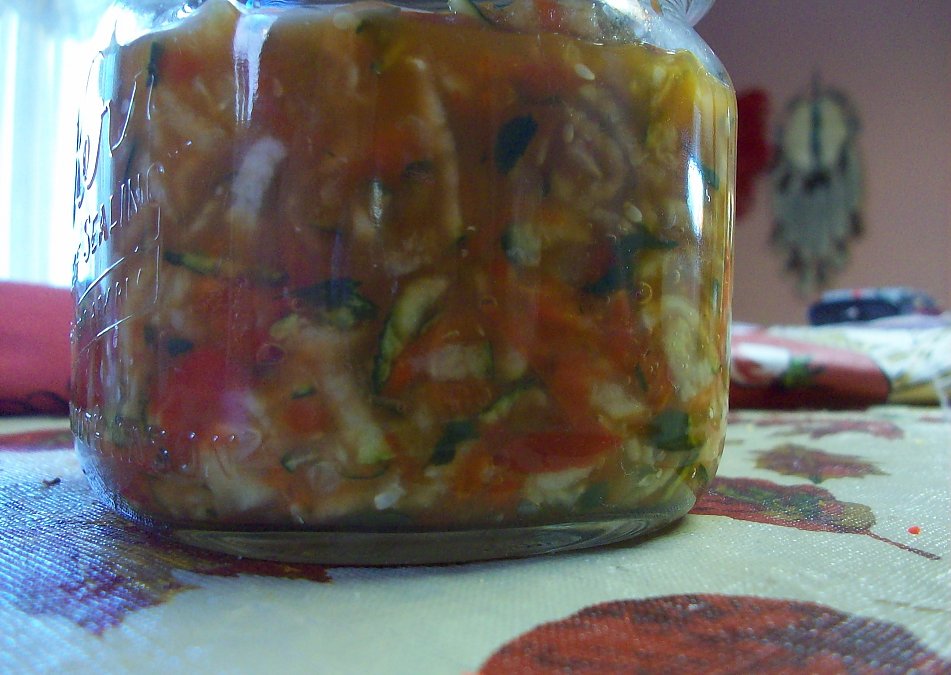 By zucchini breath Raw, fermented sweet pickle relish. Made sauerkraut style and chock full of lovely probiotics.