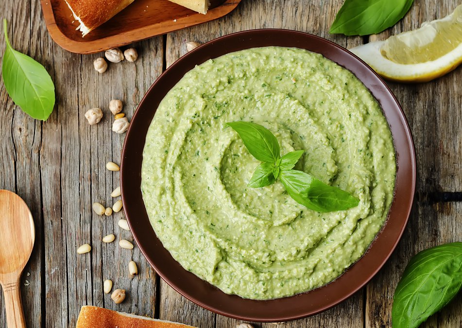 By Andrea Raw Brighten up the color and flavour of simple chickpea hummus with subtly sweet green peas and fresh basil in this 15-minute healthy raw vegan recipe. Try this Raw Green Pea Hummus with Fresh Basil as a dip or spread onto some Raw Crackers!