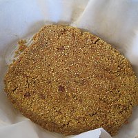 3. Grind 1 1/2 cups flax seeds and put in a large bowl. Thoroughly blend in the salt.