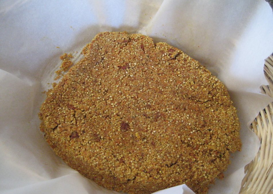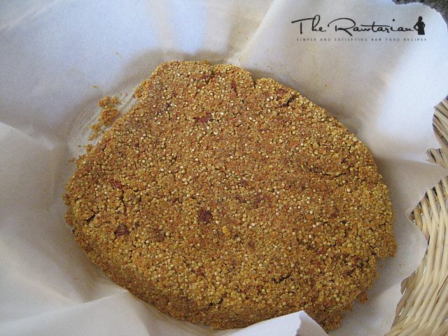 2. Combine the pulp or sprouts with the nuts, goji berries, salt, and spices. If you are desiring a more savory recipe, then I recommend using sprouts(leafy), cumin and some cayenne, For sweet: carrot pulp instead of sprouts, some mesquite, and sweet paprika. Process with the quinoa.