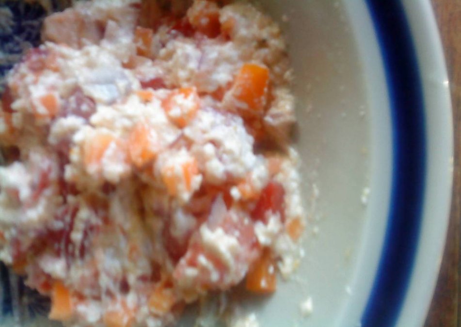 Here's a refreshing , delicious breakfast scrambler! Any veggies you have on hand and/or like would be good in this. Zucchini would be great!