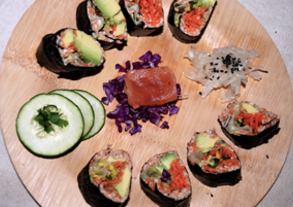 Put the soaked walnuts, nama shoyu, ginger, garlic and lemon into a food processor and blend (add a little water if needed). Once it is creamy, spread half on a nori sheet. Add the sprouts, carrot and cilantro on top and then roll the nori sheet tight. enjoy!!