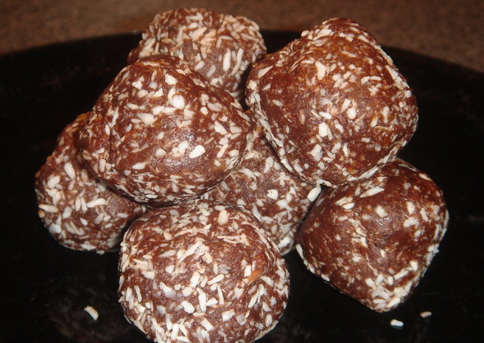 Reminiscent of an Almond Joy, these truffles are a great pick-me-up and they take only 15 minutes to make! Kids love to make (and eat) these too! They are great to pack in a lunch or for traveling. Easy peasy! ;0) If you want to get more creative, you can use a cookie cutter to shape the balls into something else.