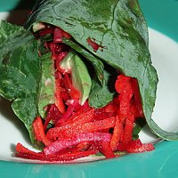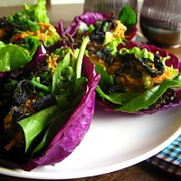 Wash, dry and spread out cabbage leaves. Spread a tablespoon of “cream cheese” into each leaf. Then add a tablespoon of your mixed nuts and seeds to each leaf. Do the same with your dried fruit. Fold wrap-style and eat.