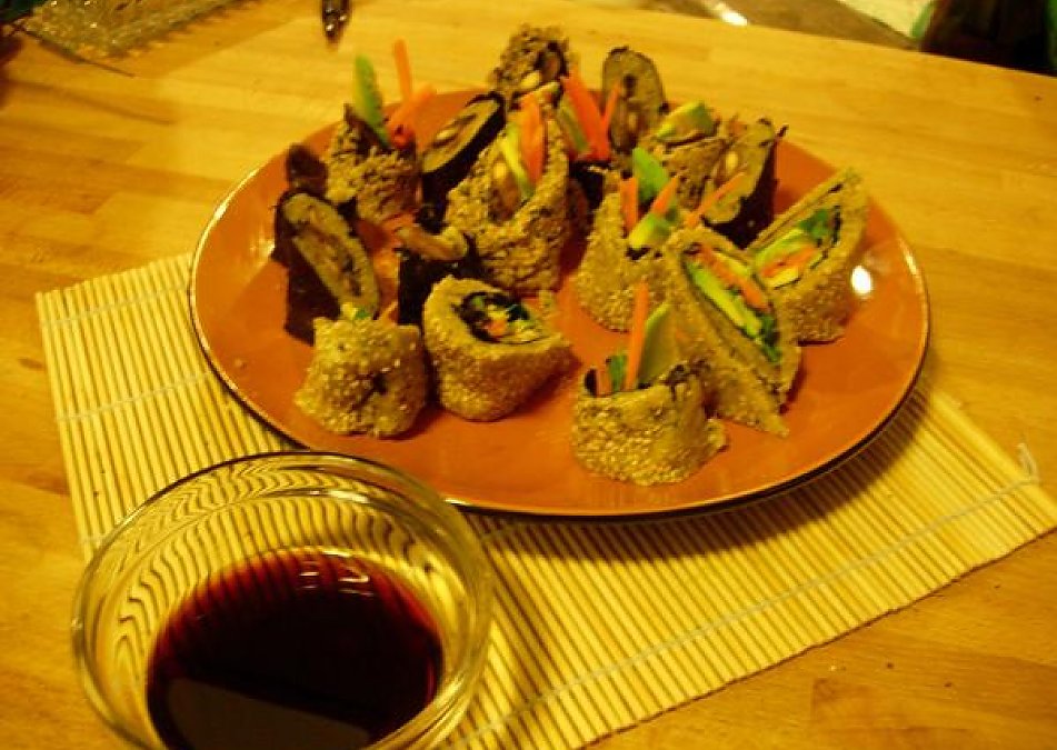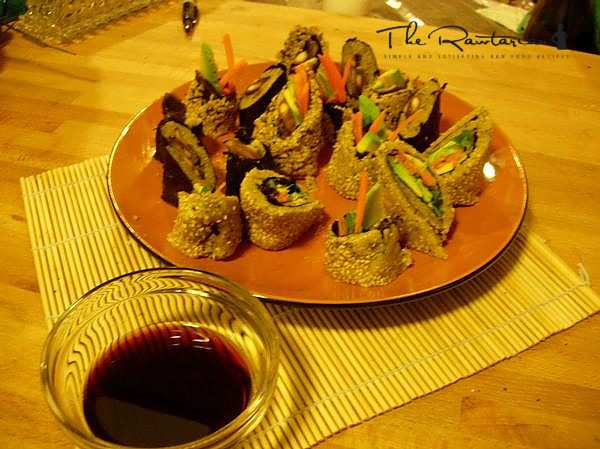 Wow these things truly rock!! One of my first raw recipes and what i love the most is that its so much easier and faster to make than fiddling about with sushi rice!