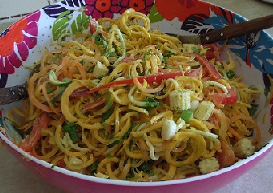 Haha, this looks so cool and noodley! I ordered my spiraliser right away when I saw this, now I'm waiting for it to arrive so I can make some yummy raw noodles! Thanks for the recipe. O