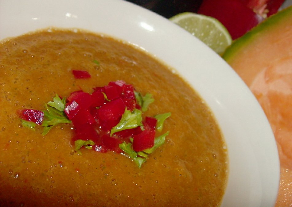 The "surprise" is the addition of cantaloupe. It may seem a little out of place, but I think it adds a light sweetness.