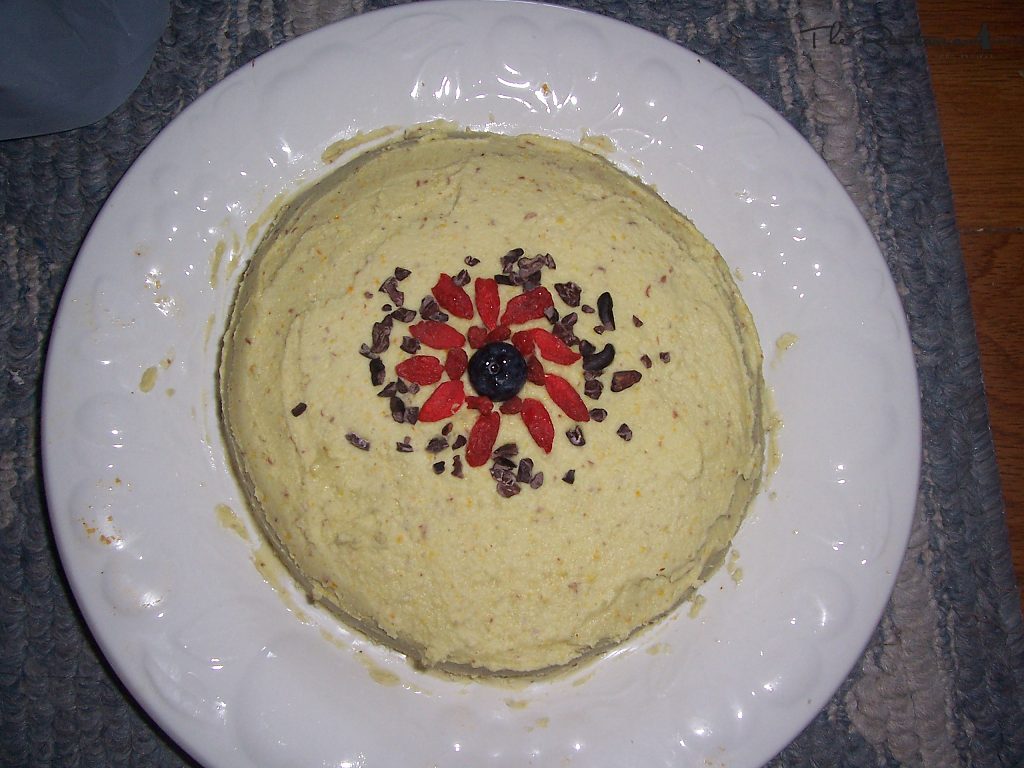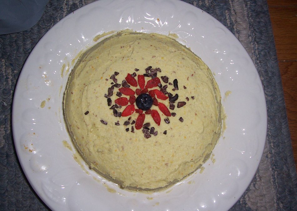 "I spread this deliciousness on a raw carrot cake made from sunflower seeds, then decorated with walnuts."