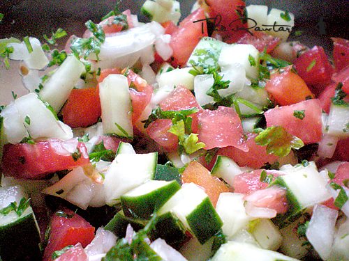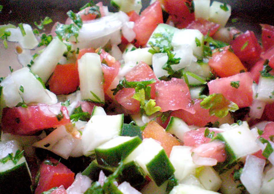 Throw in some red bell pepper and a handful of black olives and you get an Israeli salad :c) Always a favorite.