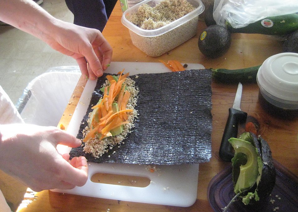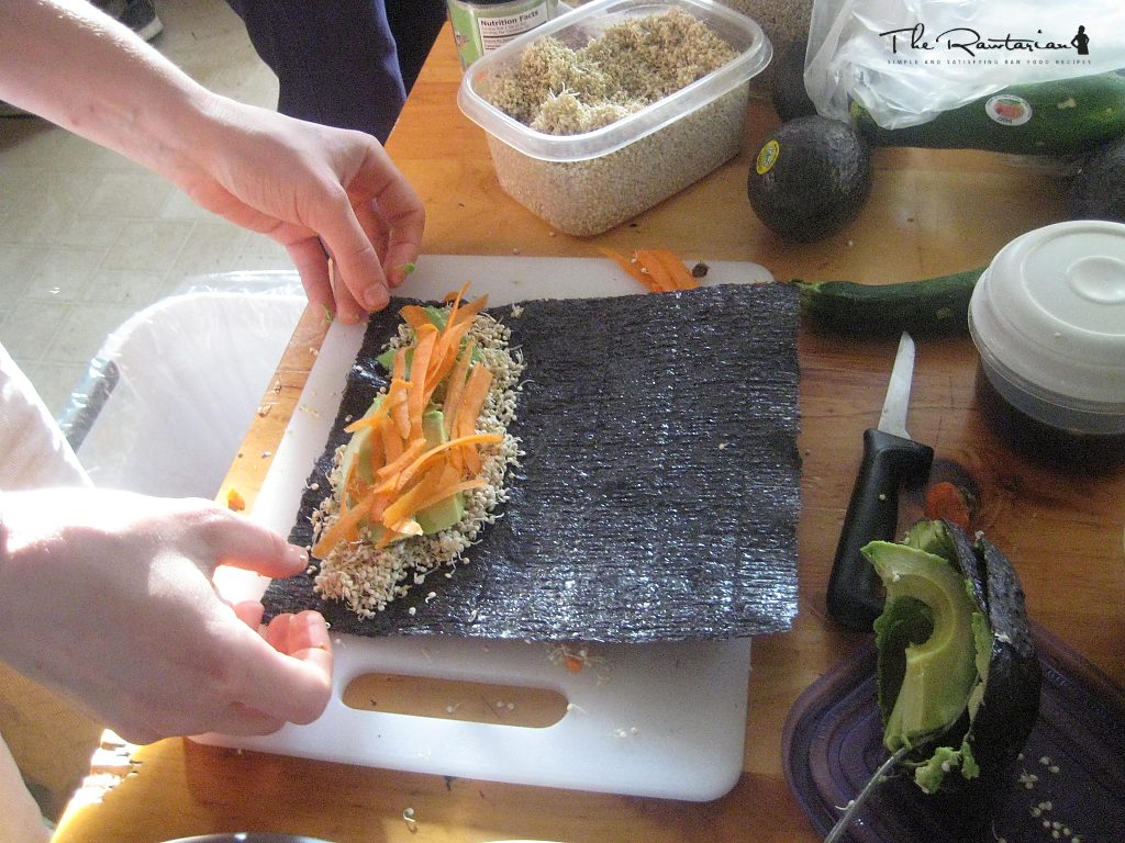 I had a couple issues when I tried this (I don't think it is the recipe, I think it is me, LOL). I wet the nori of the first roll, as instructed, and it got so moist it never dried (ewww...). So I tried again and did NOT wet the second one (except a little to seal it off), and it was STILL too wet. Maybe it was the quinoa?? I don't know... :-(