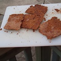 The texture takes getting used to but let it sit in your container for a while (like overnight) after dehydration, gradually it will soften and taste like wholegrain bread sliced thin. I used an oven on the lowest temperature…basically a light, with the door ajar.