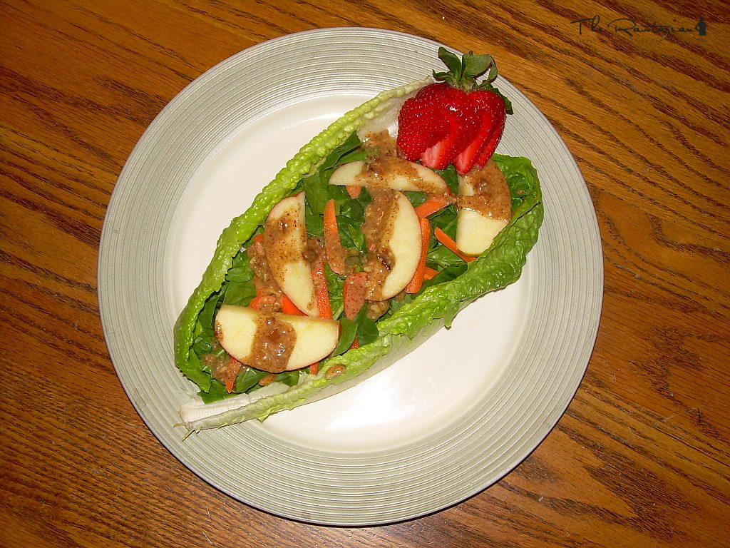 Since going peanutbutter free, I eliminated my favorite snack: apples and carrots with peanutbutter :(. So now I’m addicted to raw almond butter. Made this today because I was craving carrots with almond butter, but everyone’s always saying “eat greens!” So to fill myself up and stop the munchies I put it all in one...