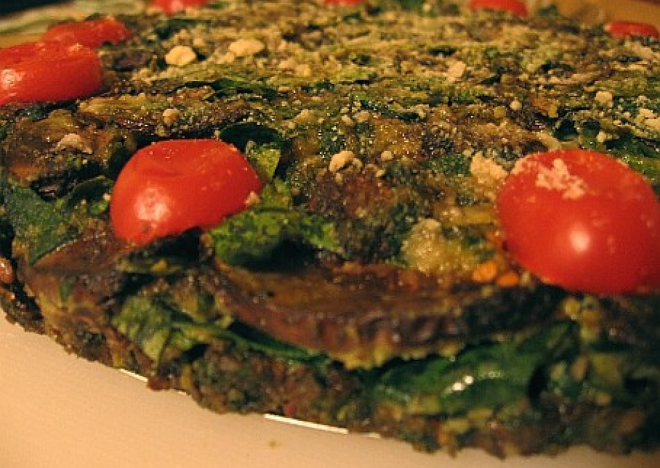 Spinach And Mushroom Quiche In A Kale Crust