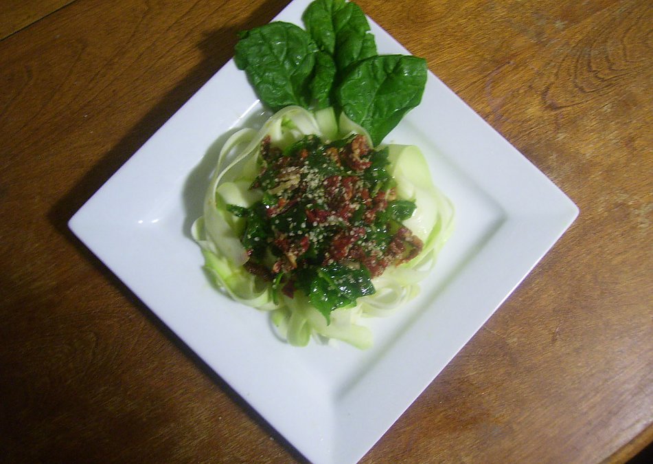 By bronwyn This is my absolute favourite pesto! It is shown in the picture with zucchini noodles, but it’s also great in stuffed mushrooms or red peppers.