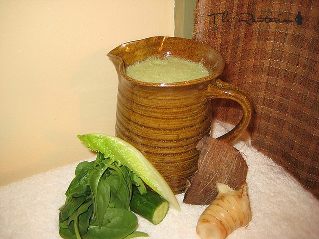 - First blend the following: seeds, coconut, dates, spices, galangal, cucumber and one of the cups of the water.