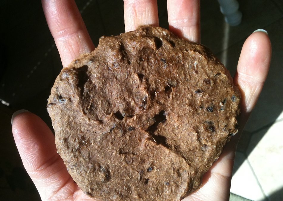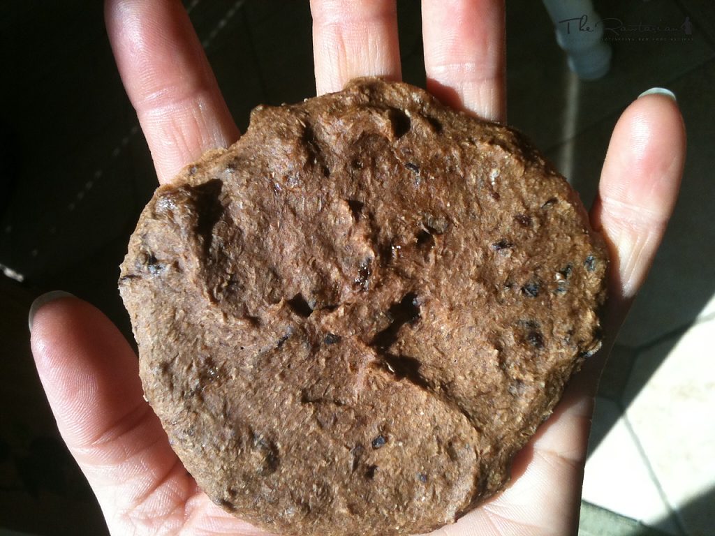 5. Dehydrate at 115 Fahrenheit for 6 hours. They should still be gooey inside, but will lift up like fruit leather.