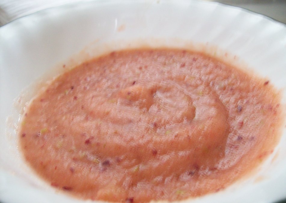 I LOVE strawberries in my applesauce... never thought about blending them in though, I usually just chop them up into it! YUM!
