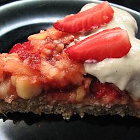 This does look absolutely yummy; and easy to make too! Do you think you can grind the almonds and make the crust while they're wet so-as to do the sun dehydrating process just once instead of twice? Also I'm thinking about throwing a banana into the mix for a bit more flavor... think it will be a positive or negative?