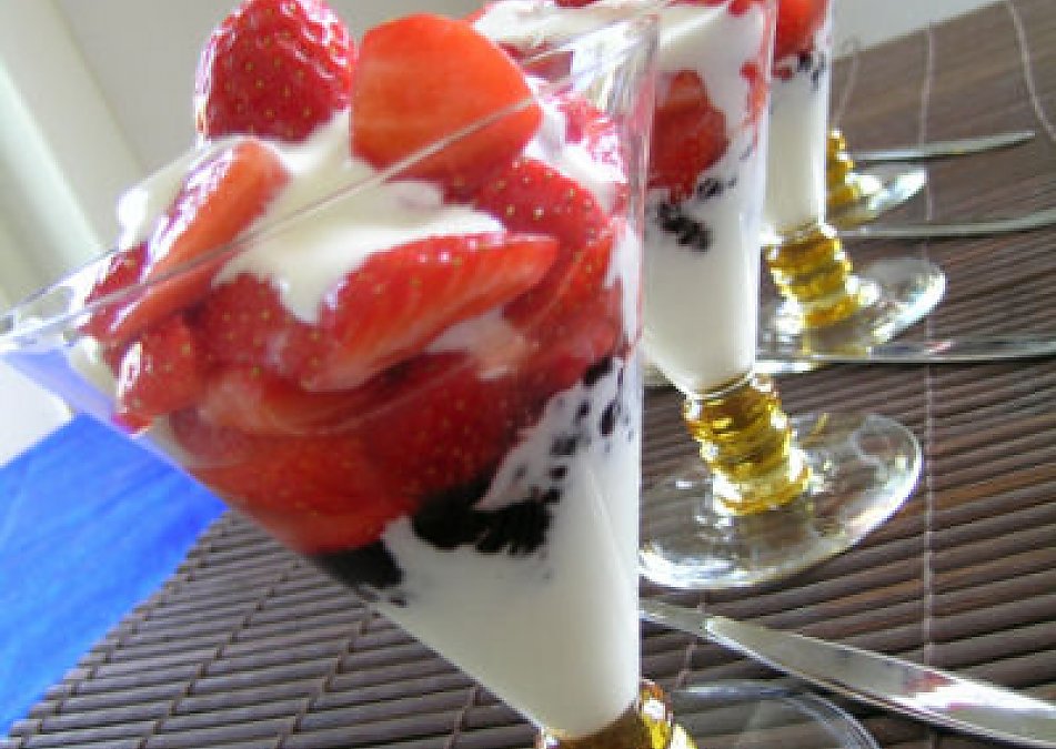 5. Once the pudding is set, put a spoonful in each cup, followed by a handful of blackberries, half of the strawberries, more pudding on top and sprinkled with the rest of the strawberries. Of course, this can be done any way you wish.