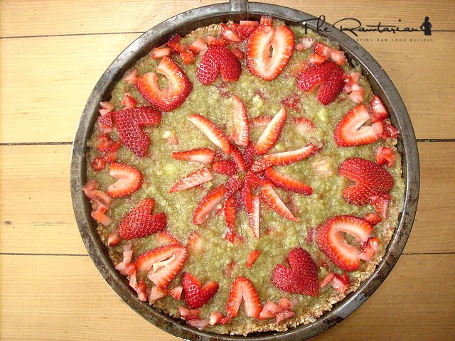 Wow... It feels so good to get feedback from the outside world on my in home creations/inspirations! A note on peeling the rhubarb-- Mostly it's to cut down on the tough fiber... (the strawberries can color the pie red if you blend some up with the rhubarb). There's so much fear of raw rhubarb out there, maybe because it's so sour on first munch, but I had to add lemon juice to one recipe I made because it wasn't tart enough! The thinner, redder stalks are going to be sweeter and the thicker greener ones, more tart. Much love to all you gorgeous raw-foodies out there! Peace...