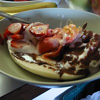2. Chop walnuts and slice strawberries. Sprinkle over banana/fig mix.