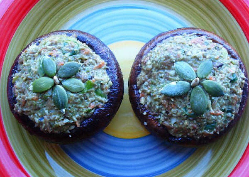 stuffing 3 Large Organic Brown Mushrooms, 1 Stalk Organic Celery, 2 Stalk Organic Green Onion, 2 Cloves Organic Garlic, 1/3 cup Mixed Organic Raw Pecans/Sunflower seeds, 1/2 tsp Organic Dried Dill