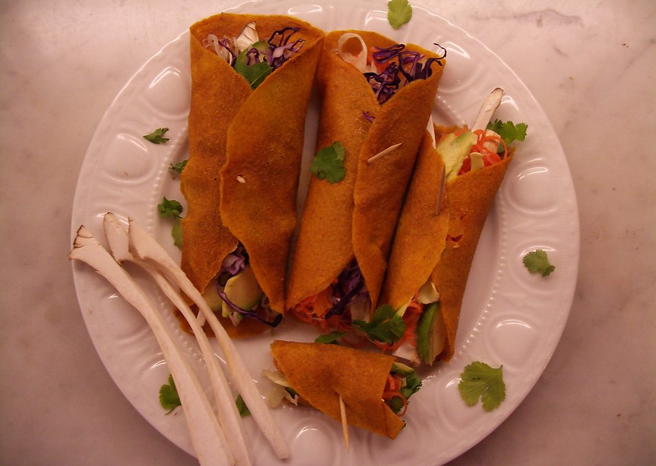 By Suasoria This is a slightly sweet, slightly spiced wrapper that would work equally well for a blintz (with nut cheese, raisins, dates, and fruit) or a spring roll stuffed with savory veggies for dinner as in the photo.