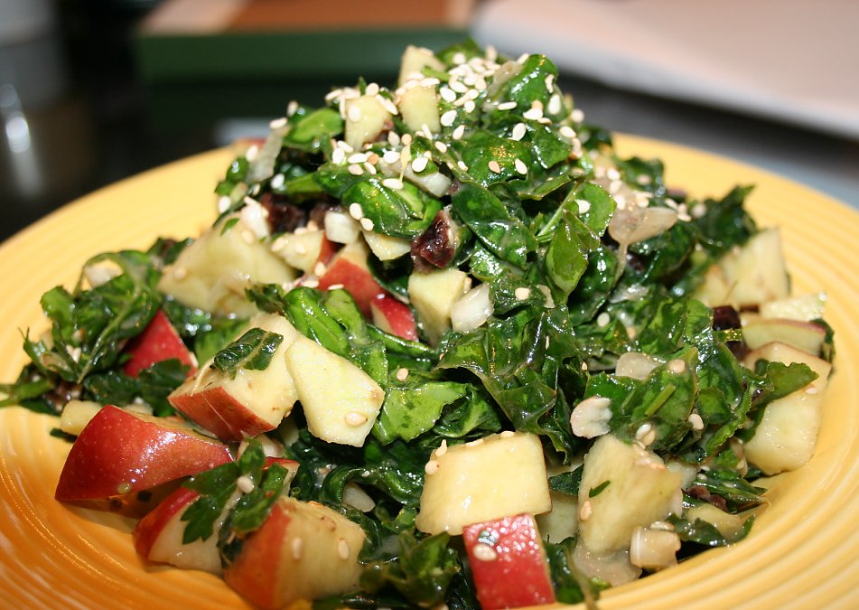4. Let it soak for about 20 min, then add half an avocado (smush in) and chopped apple and mix well, so that it's creamily distributed.