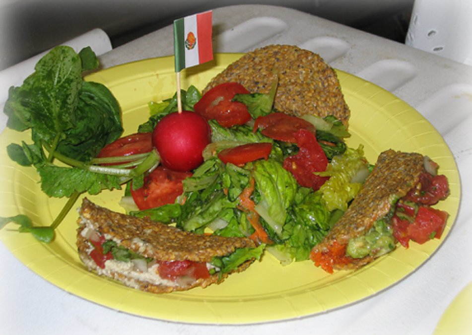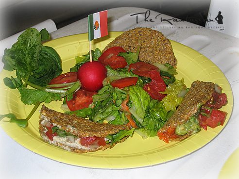 How to: Mix everything in a food processor, and process till smooth, add water to make it more like a batter. Once smooth, refrigerate this mixture for 8-12 hrs. Now, using a spatula spread a thin layer of the taco batter on Teflex sheets. Dehydrate at 105°F for 3-5 hours. Remove the taco sheets and using a round cookie cutter or a lid cut out rounds. Now place the rounds on the Teflex sheets and dehydrate them for 2 hours at the same temperature. After two hours pick the taco shells up and fold them onto each other making a taco shell and return them back in the dehydrator, placing them on dehydrator shelves for another 10-12 hours or until crisp.