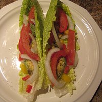Prefer the middle of a head of romaine for “boat” tacos or the outside of big leaves for rollups.