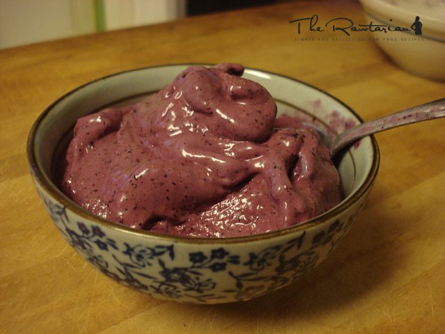 Creamy cold blueberry. What more could you ask for on a hot humid mosquito-y summer day? Variation: This can be made into a smoothie if you add more nut milk.